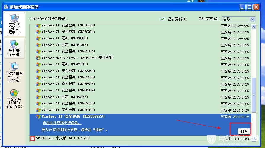 3:打开添加或删除程序勾上“显示更新”找到这两个补丁点删除然后重启电脑即可恢复。