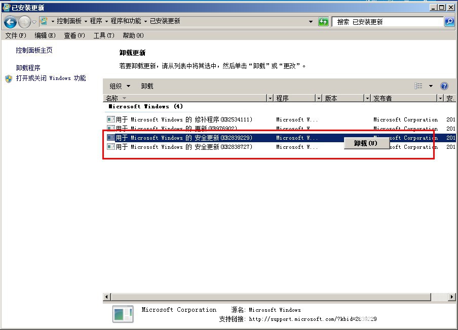 5:分别找到这两个补丁右键点卸载然后重启电脑即可恢复。