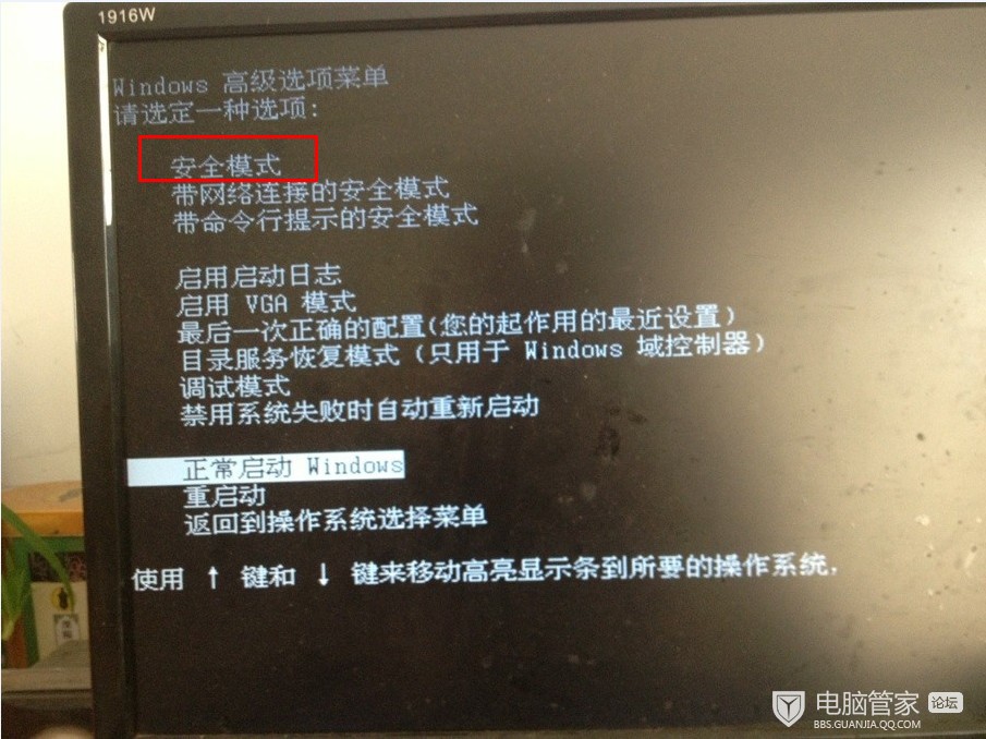 安全模式选项图: