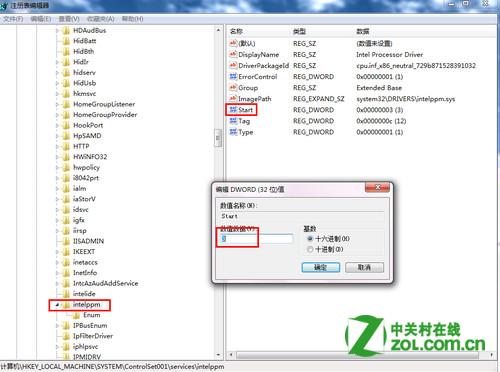 2、在打开的“注册表编辑器”中,先按这个目录找到Intelppm: